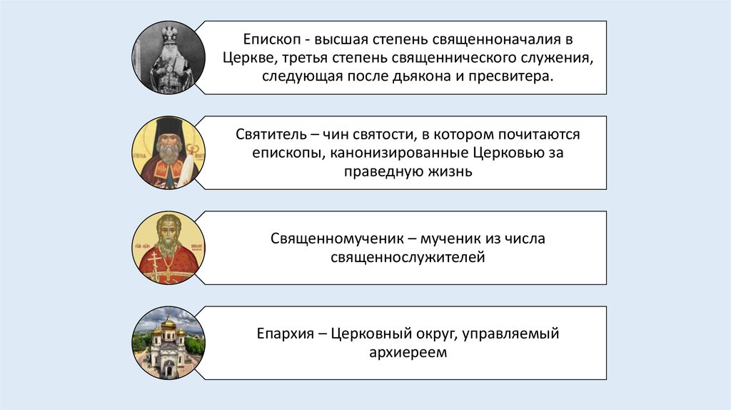 Епископ - высшая степень священноначалия вЦеркве, третья степень священнического служения,