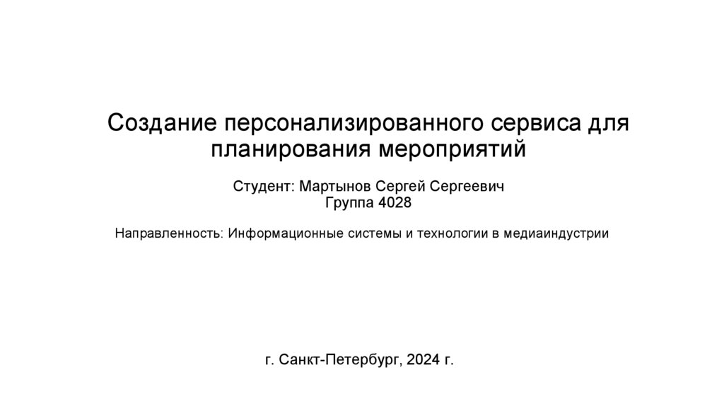 Создание персонализированного сервиса дляпланирования мероприятий