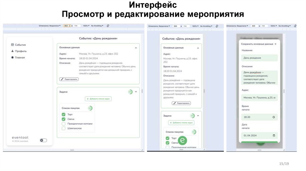 ИнтерфейсПросмотр и редактирование мероприятия