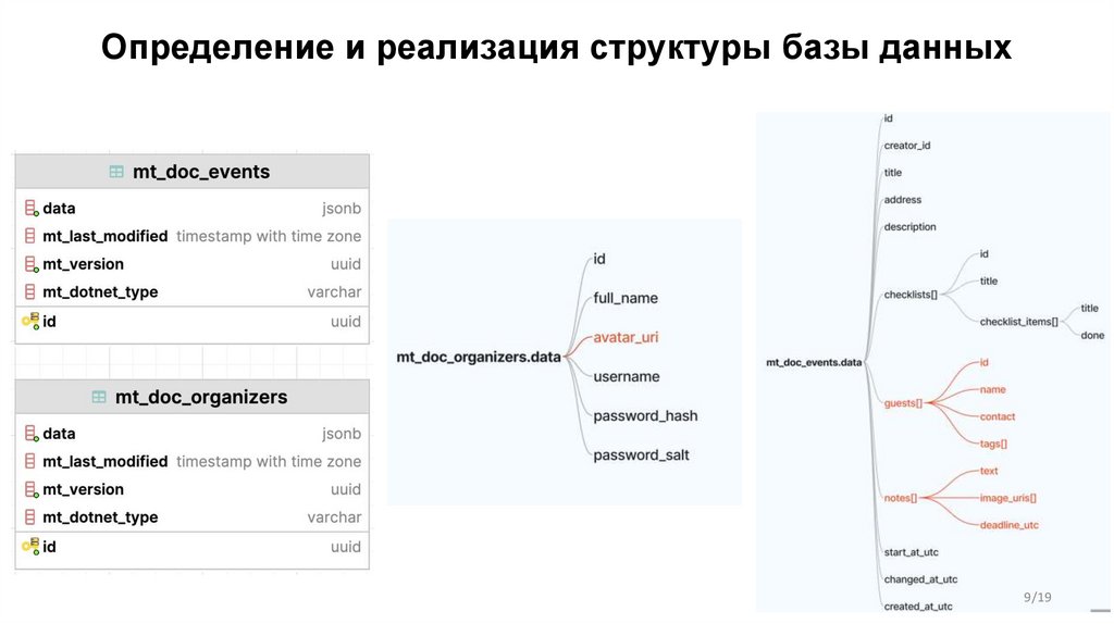 Определение и реализация структуры базы данных9/19