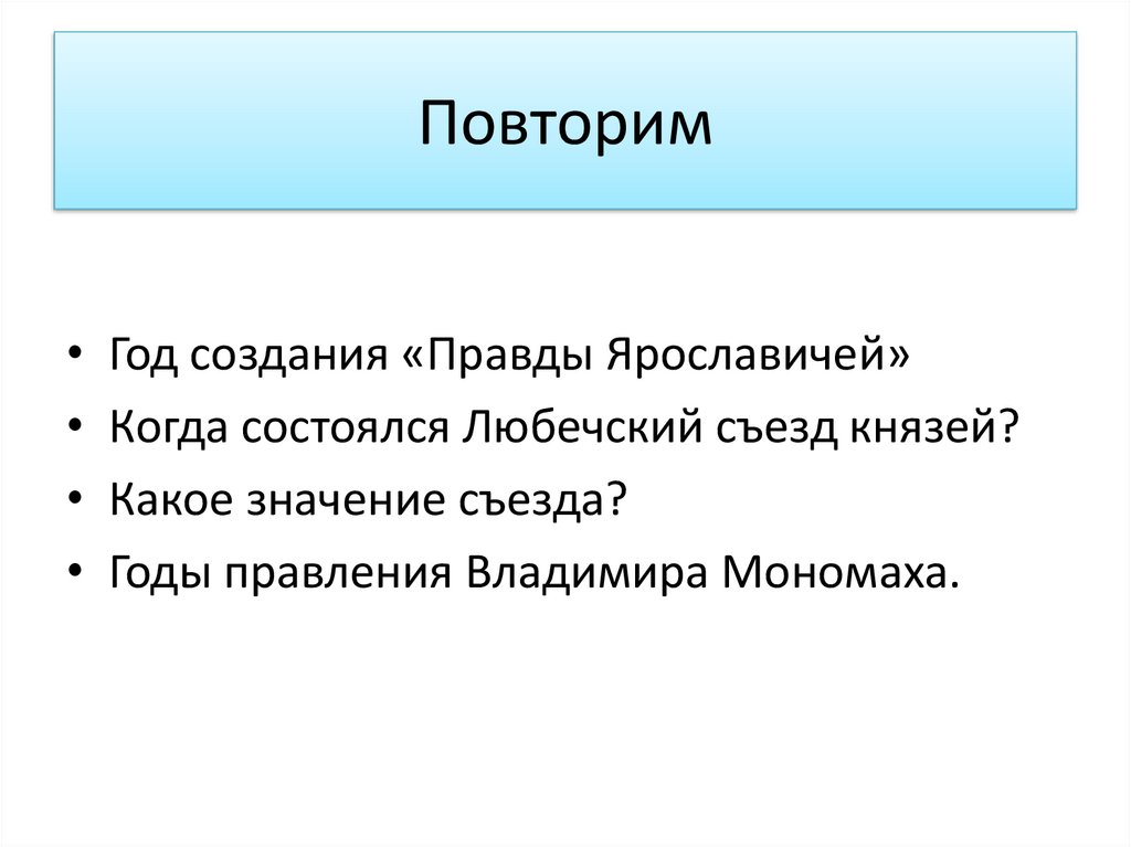 ПовторимГод создания «Правды Ярославичей»