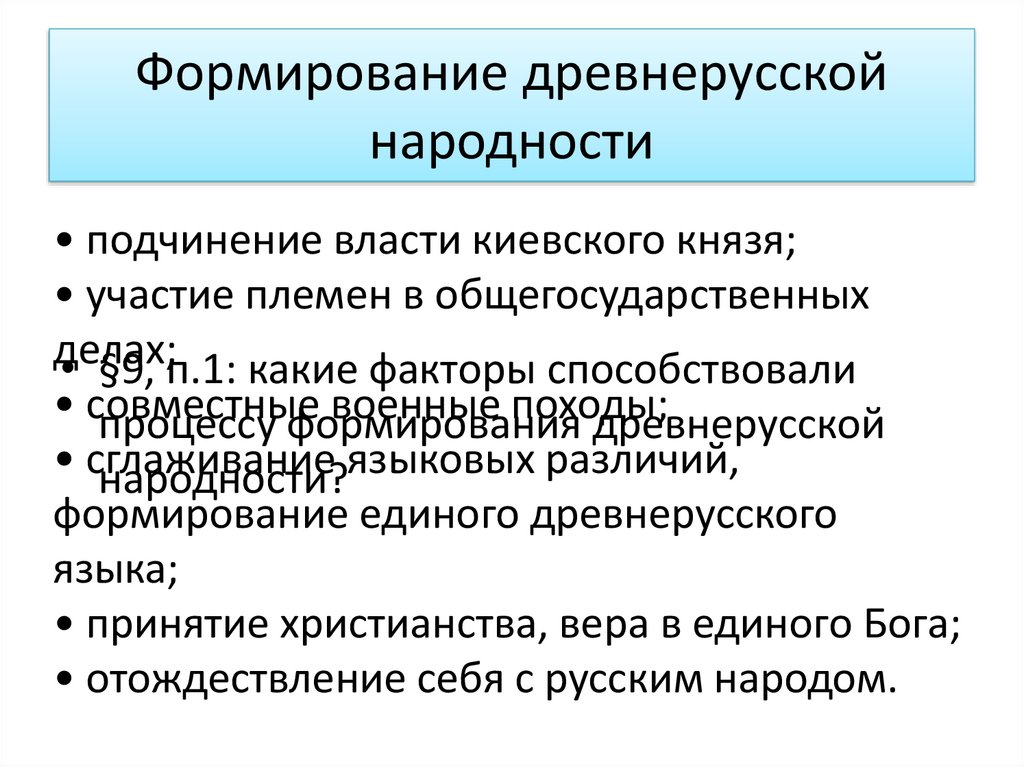 1.Формирование древнерусской народности.