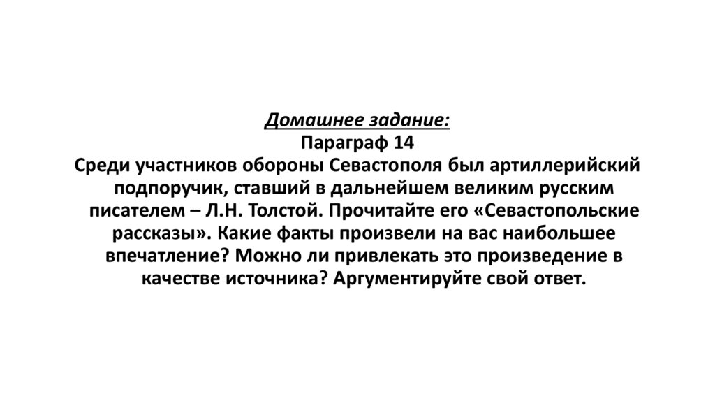 писателем – Л.Н. Толстой. Прочитайте его «Севастопольские