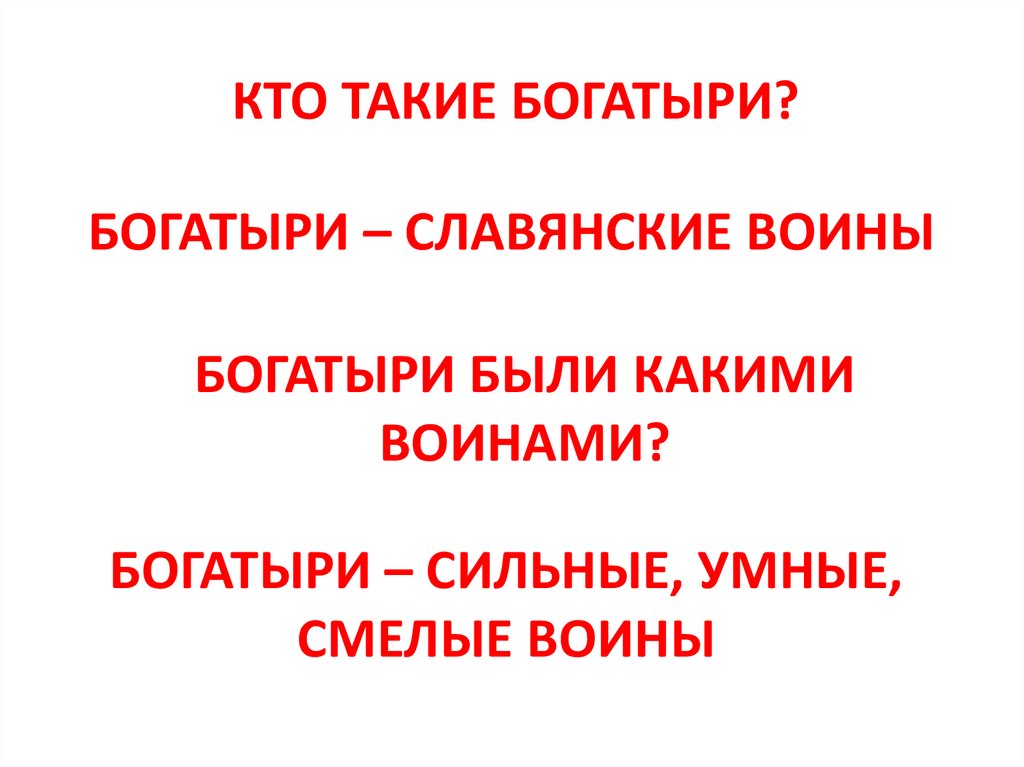 КТО ТАКИЕ БОГАТЫРИ?БОГАТЫРИ – СЛАВЯНСКИЕ ВОИНЫ