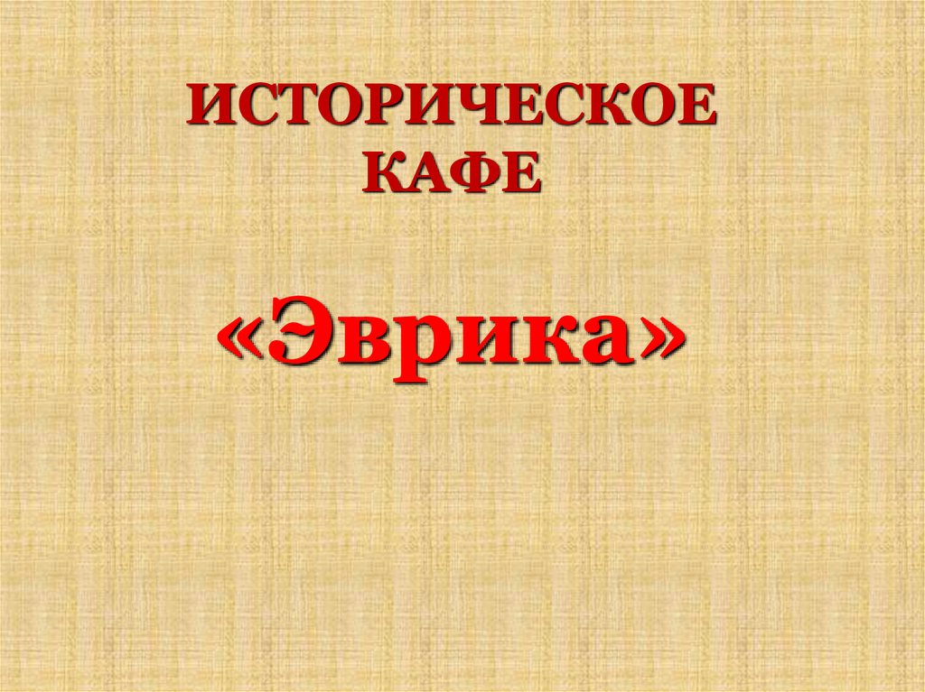 1. ИСТОРИЧЕСКОЕ КАФЕ «Эврика»