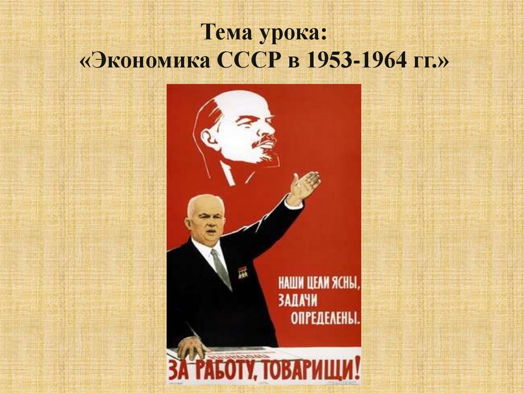 Тема урока:«Экономика СССР в 1953-1964 гг.»