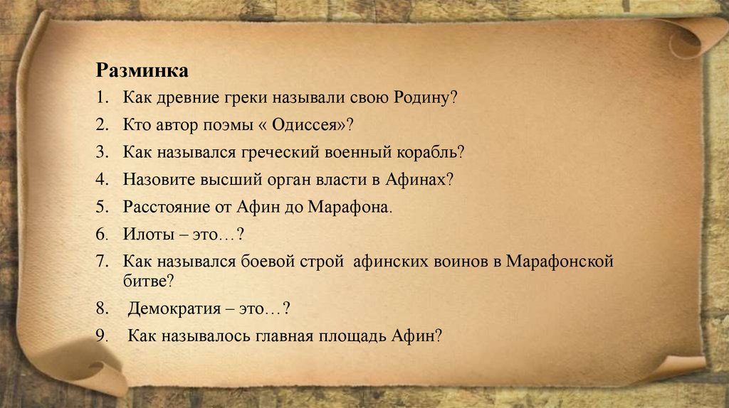 7. Как назывался боевой строй афинских воинов в Марафонской