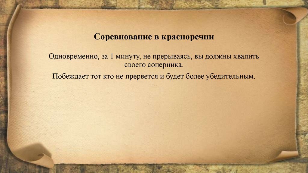 Соревнование в красноречииОдновременно, за 1 минуту, не прерываясь, вы должны хвалить