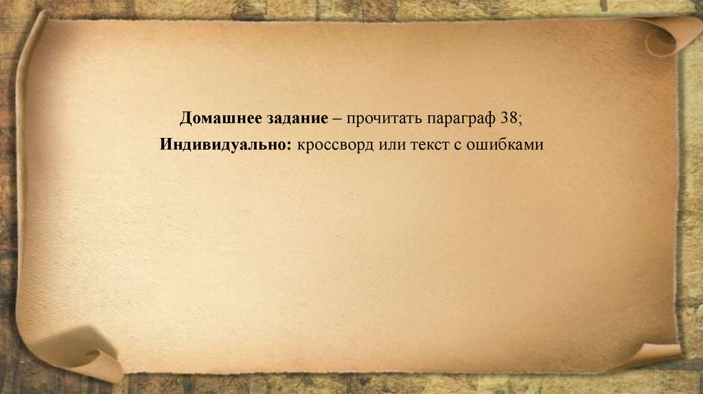 Домашнее задание – прочитать параграф 38;Индивидуально: кроссворд или текст с ошибками