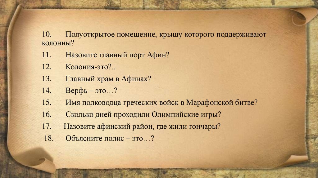 10.Полуоткрытое помещение, крышу которого поддерживают