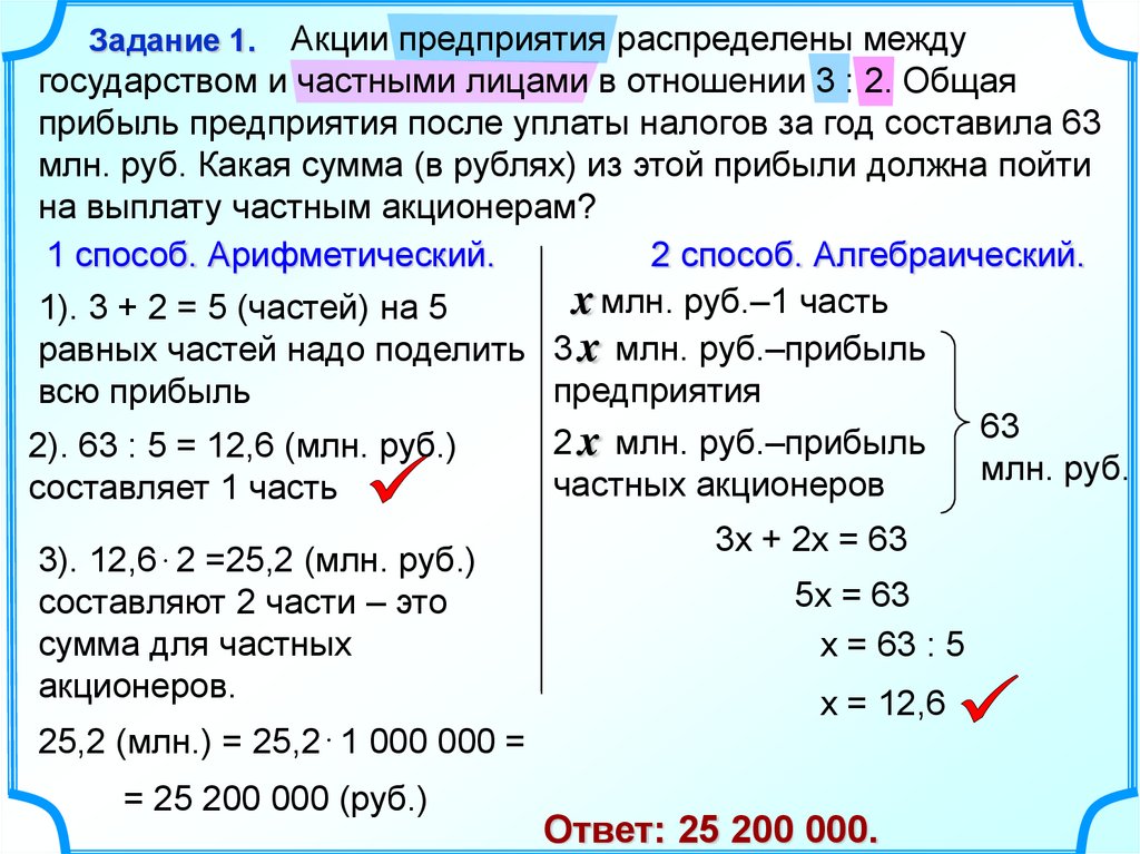 2). 63 : 5 = 12,6 (млн. руб.)