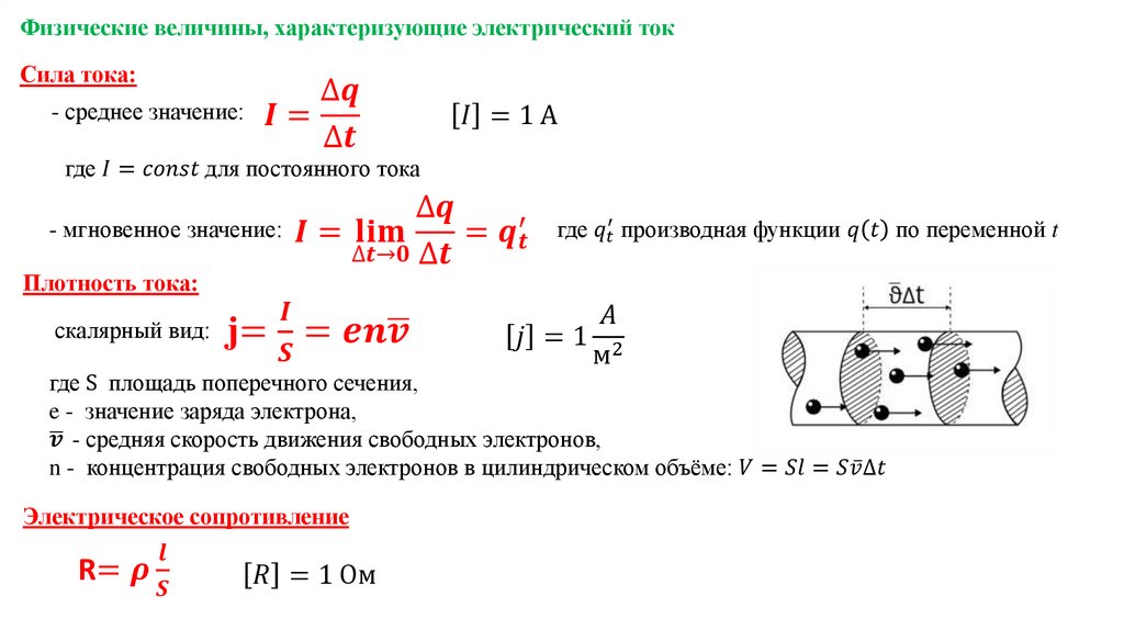 Физические величины, характеризующие электрический токСила тока: