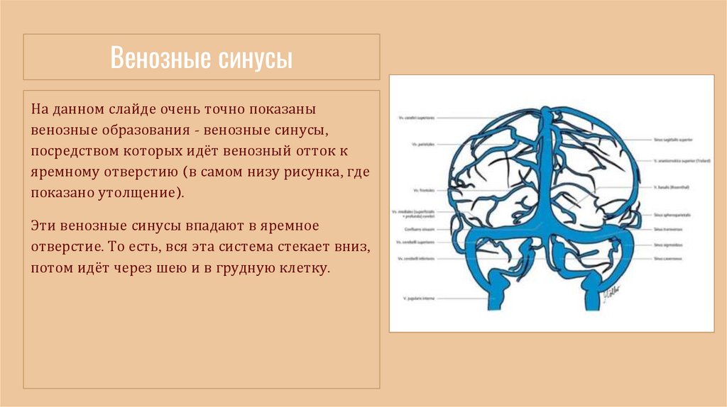 Венозные синусыНа данном слайде очень точно показаны