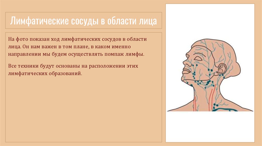 Лимфатические сосуды в области лицаНа фото показан ход лимфатических сосудов в области