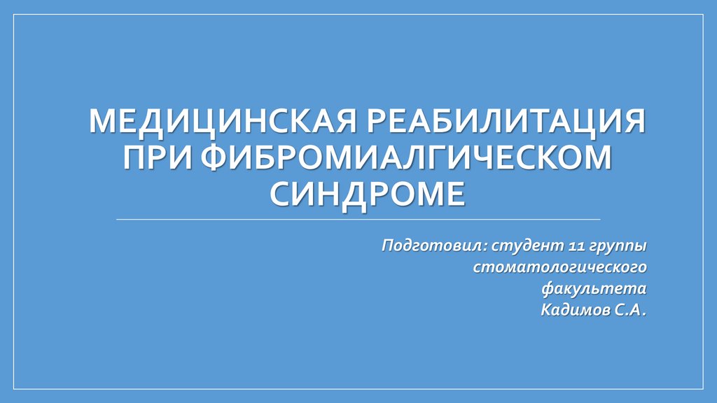 МЕДИЦИНСКАЯ РЕАБИЛИТАЦИЯПРИ ФИБРОМИАЛГИЧЕСКОМ