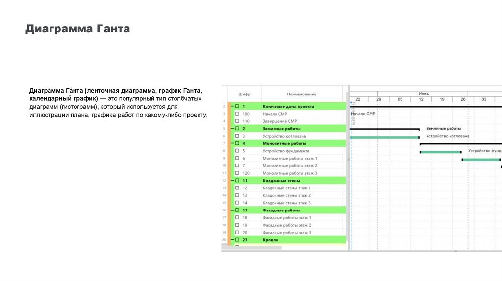 Диаграмма ГантаДиагра́мма Га́нта (ленточная диаграмма, график Ганта,