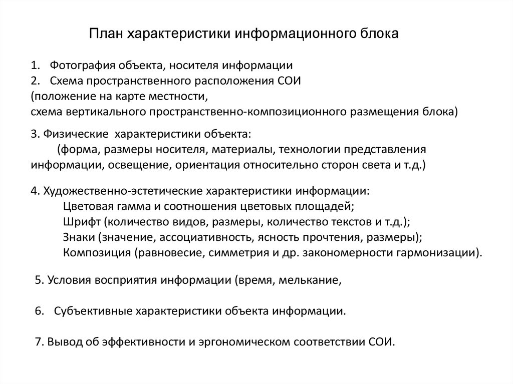 План характеристики информационного блока1. Фотография объекта, носителя информации