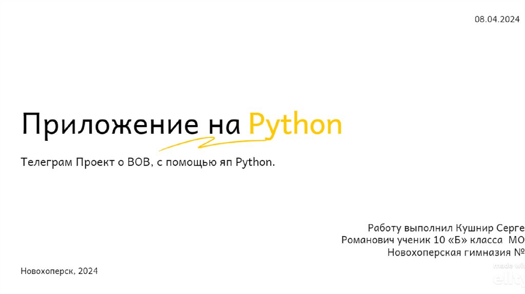 Приложение на Python. Телеграм-проект о BОB, с помощью Python