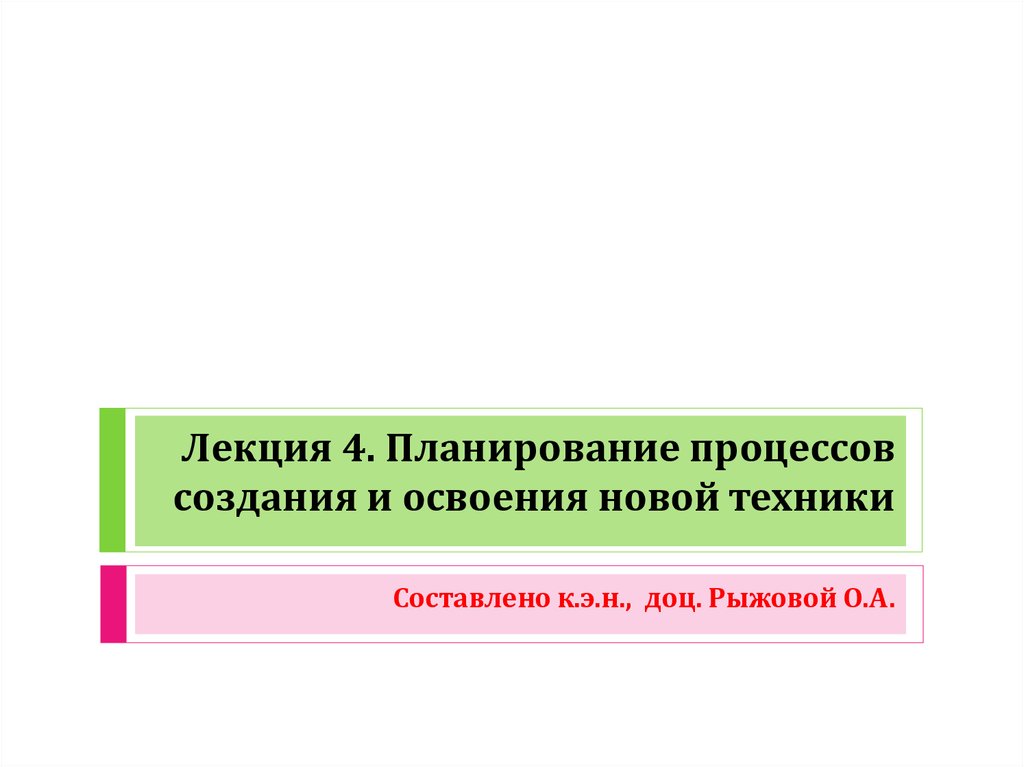 Лекция 4. Планирование процессов создания и освоения новой техники