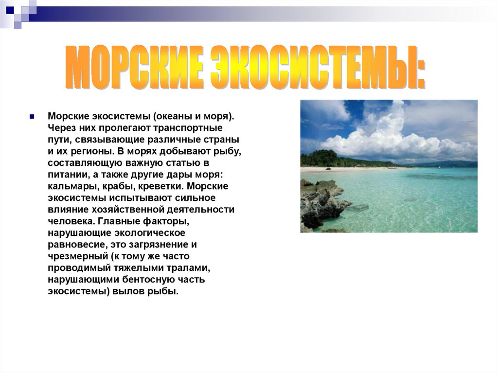 Морские экосистемы (океаны и моря).Через них пролегают транспортные