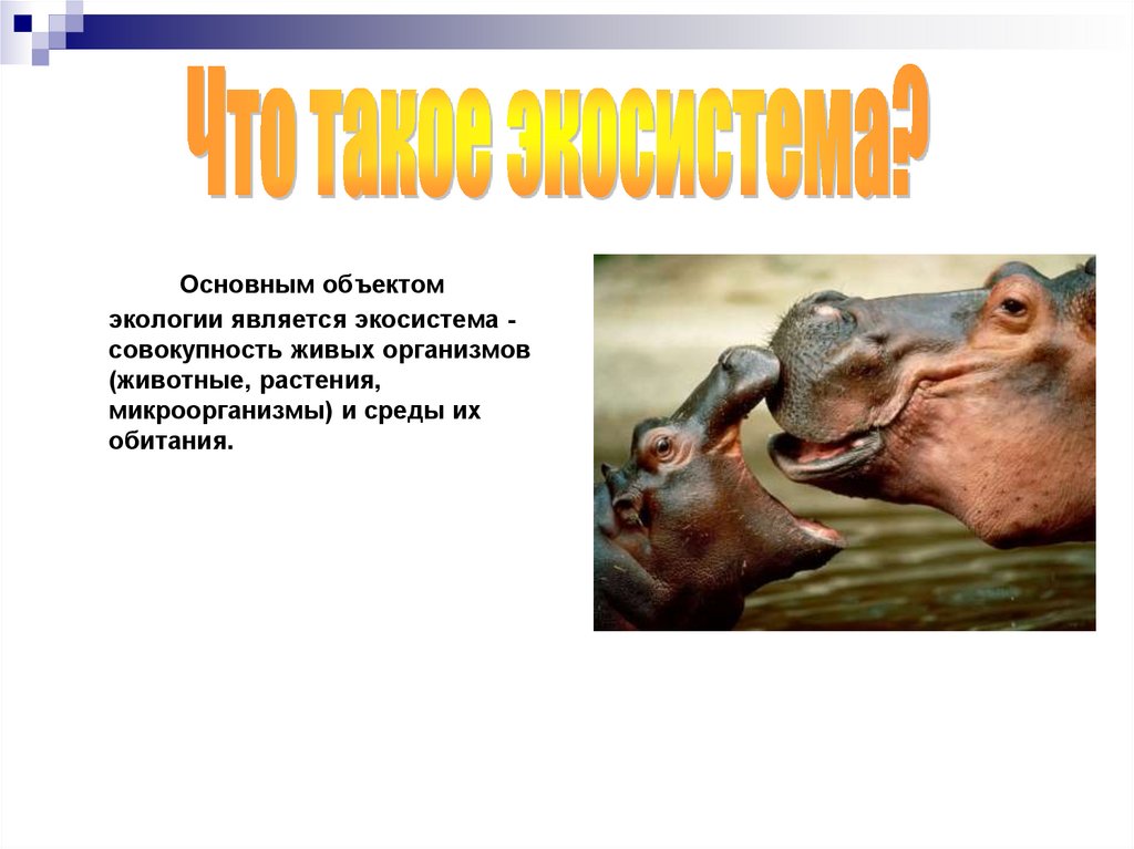 Основным объектомэкологии является экосистема совокупность живых организмов