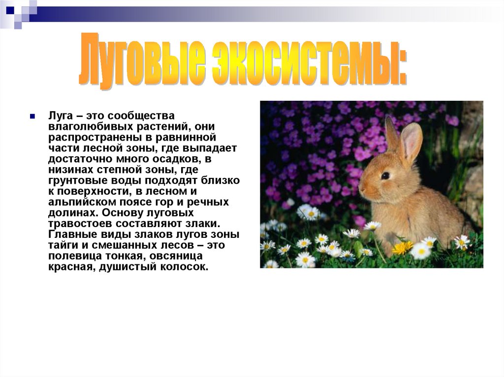 Луга – это сообществавлаголюбивых растений, они