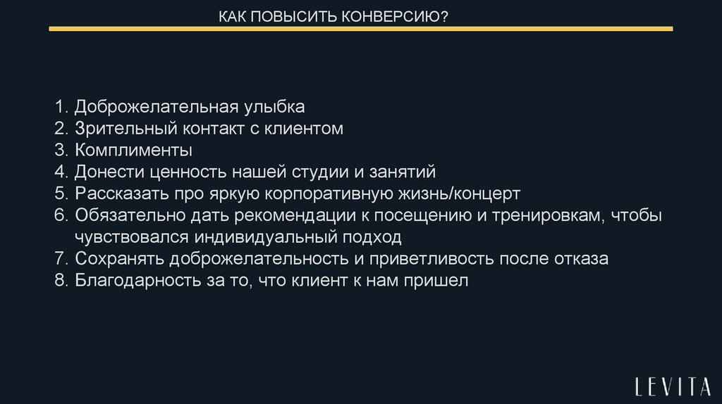 КАК ПОВЫСИТЬ КОНВЕРСИЮ?1. Доброжелательная улыбка