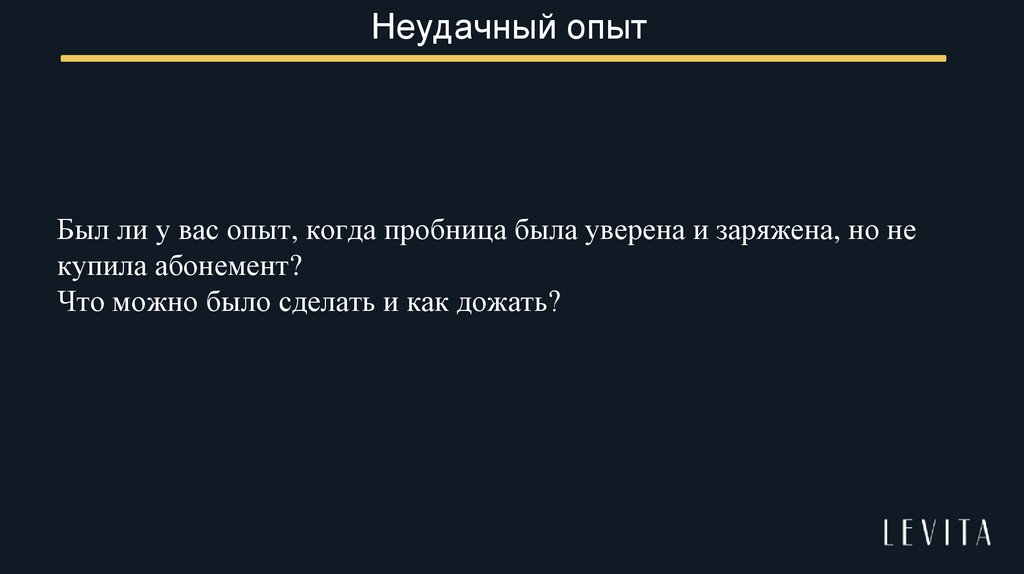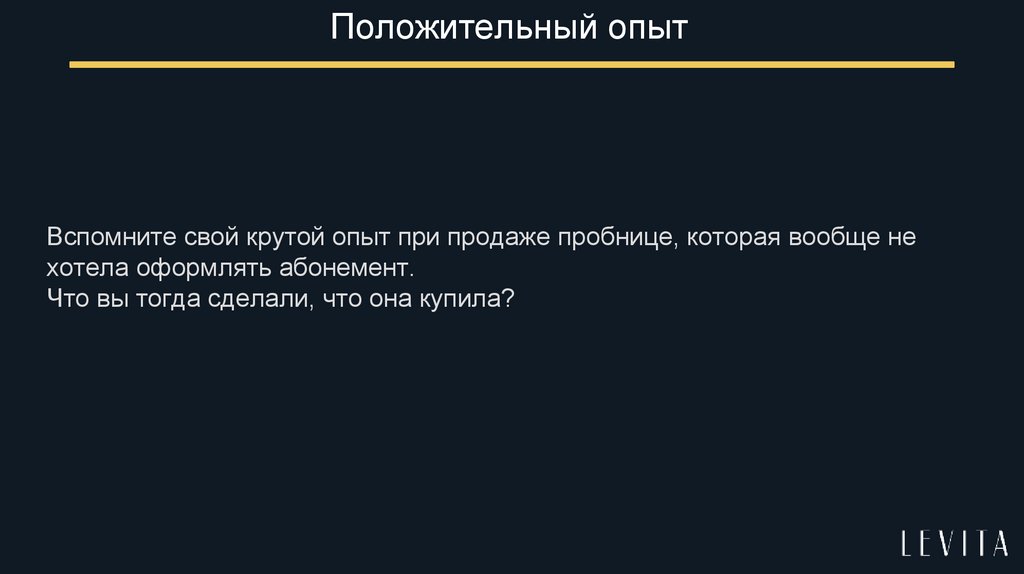 Положительный опытВспомните свой крутой опыт при продаже пробнице, которая вообще не