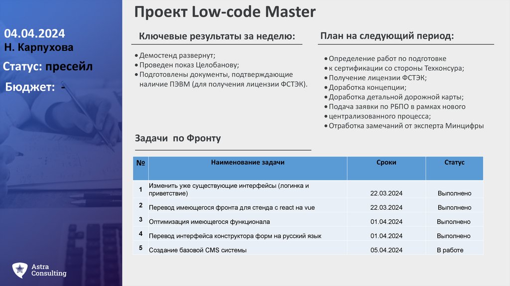 наличие ПЭВМ (для получения лицензии ФСТЭК).