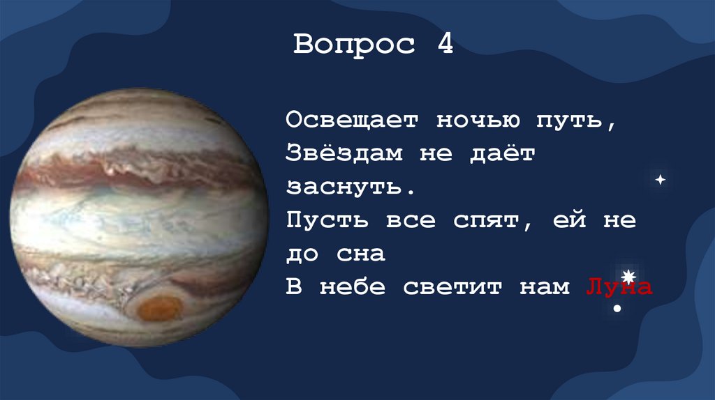 Вопрос 4Освещает ночью путь,