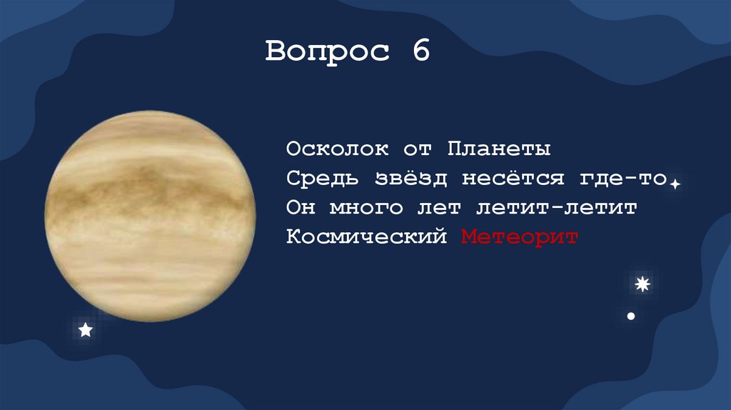 Вопрос 6Осколок от Планеты
