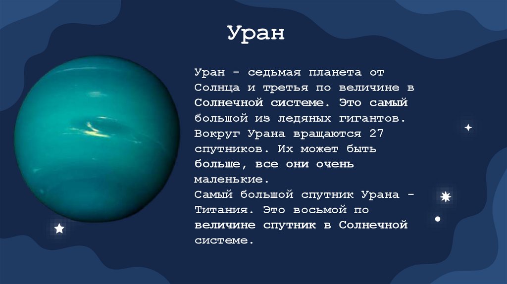 Самый большой спутник Урана Титания. Это восьмой по