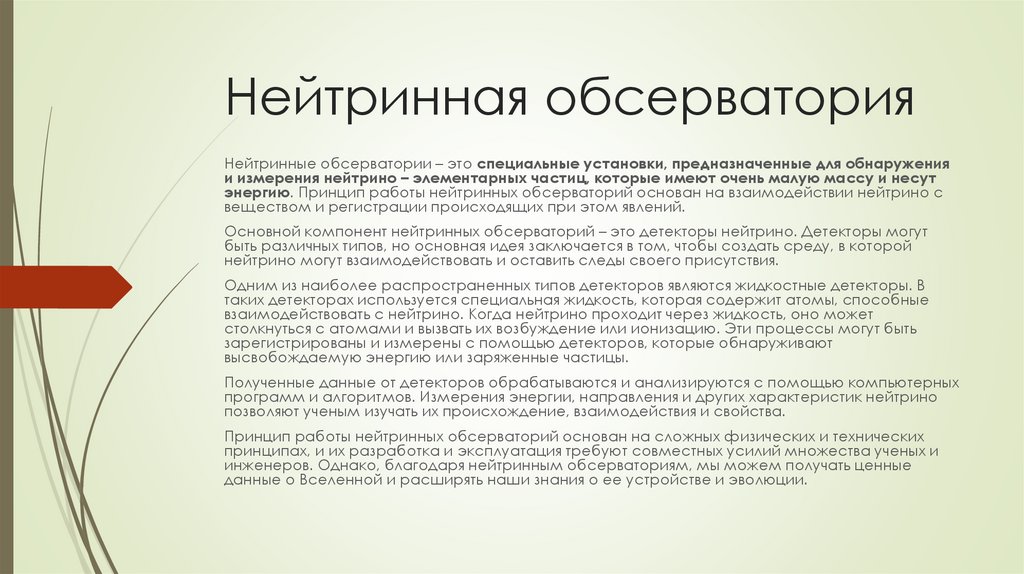 Нейтринная обсерваторияНейтринные обсерватории – это специальные установки, предназначенные для обнаружения