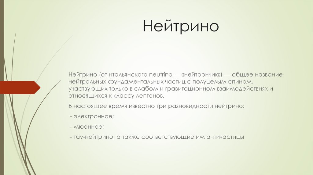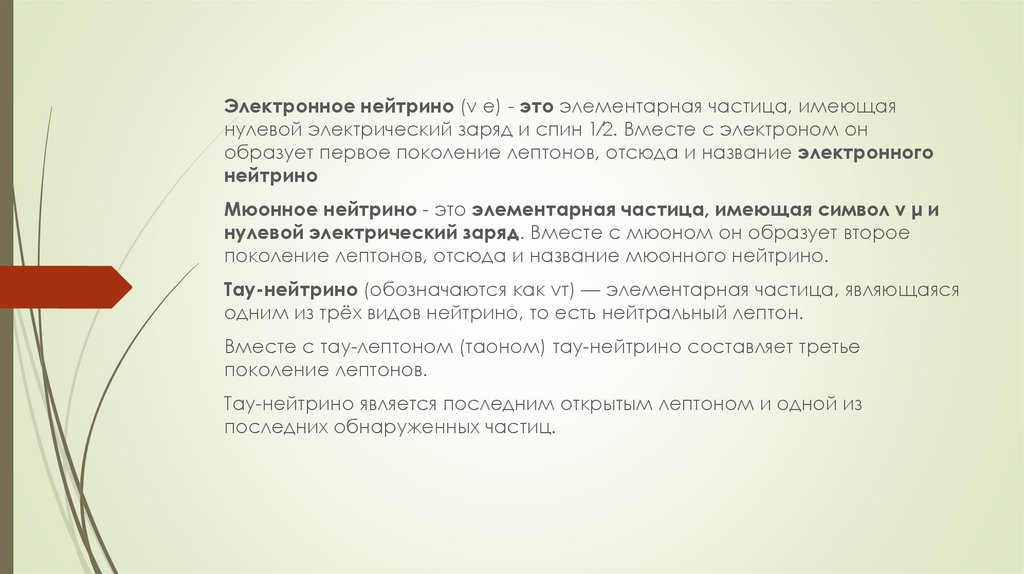 одним из трёх видов нейтрино, то есть нейтральный лептон.