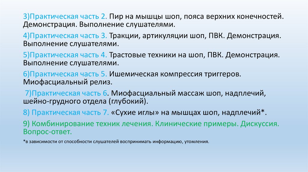 3)Практическая часть 2. Пир на мышцы шоп, пояса верхних конечностей.Демонстрация. Выполнение слушателями.