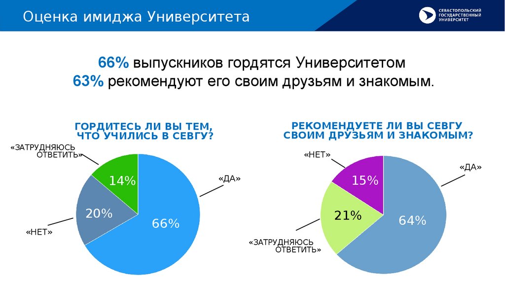 Оценка имиджа Университета66% выпускников гордятся Университетом