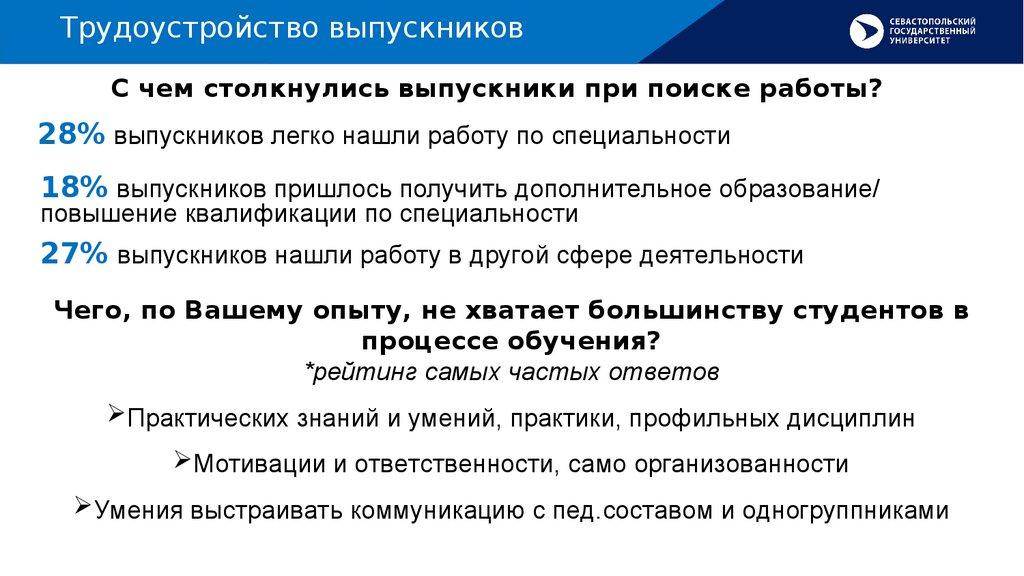 Трудоустройство выпускниковС чем столкнулись выпускники при поиске работы?