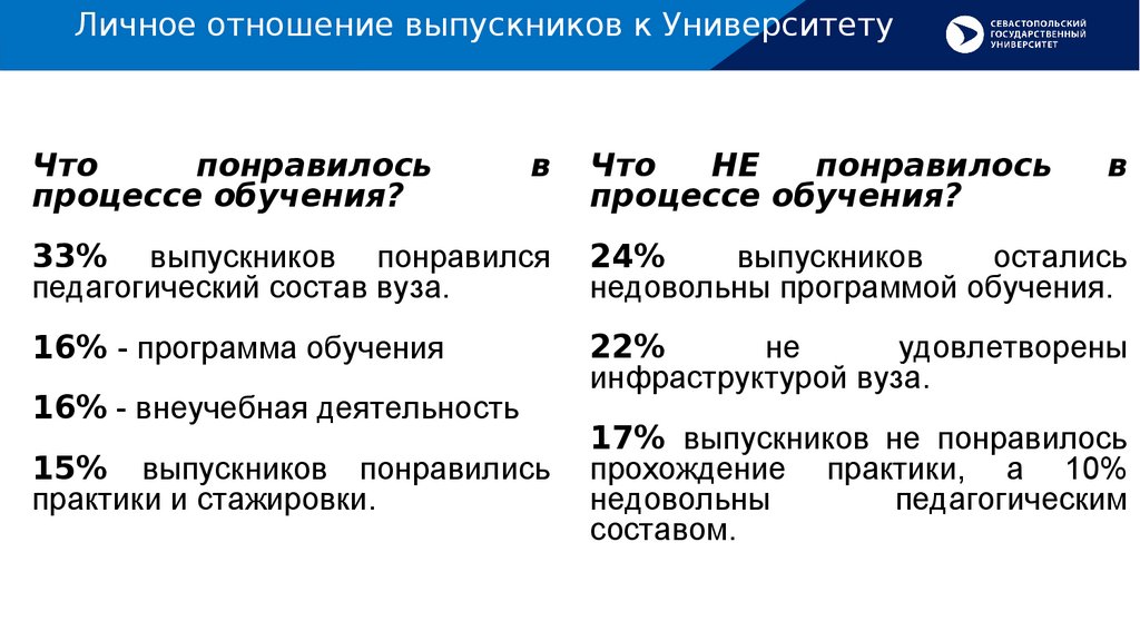 Личное отношение выпускников к УниверситетуЧто
