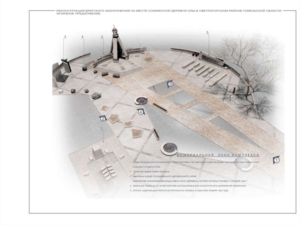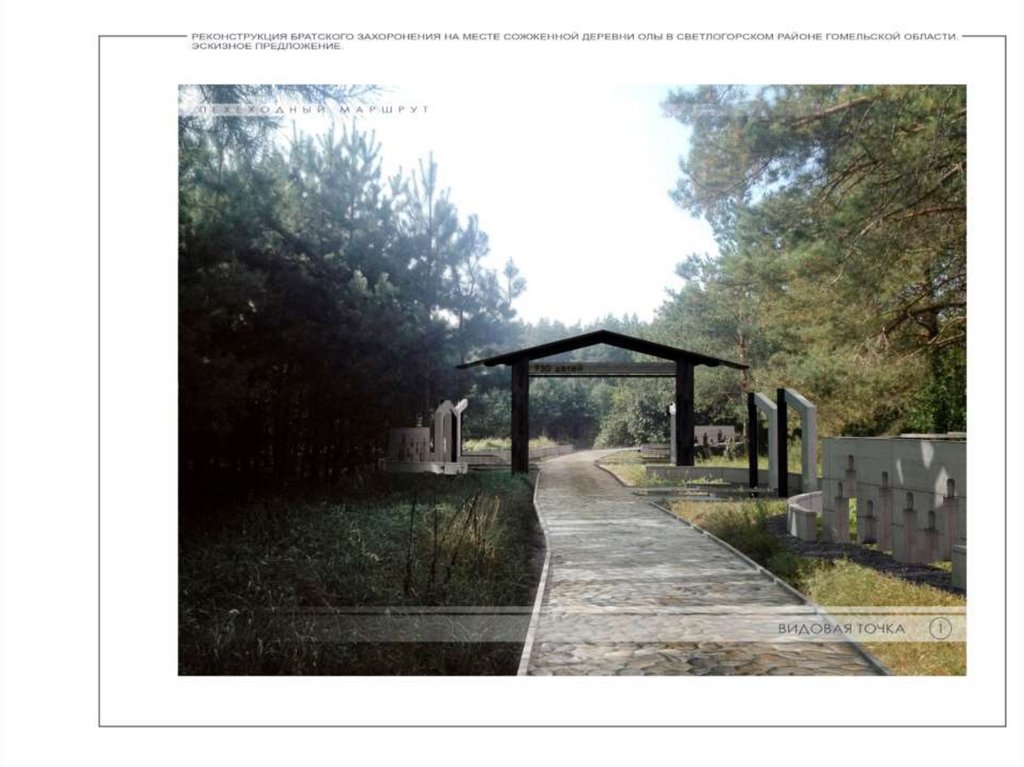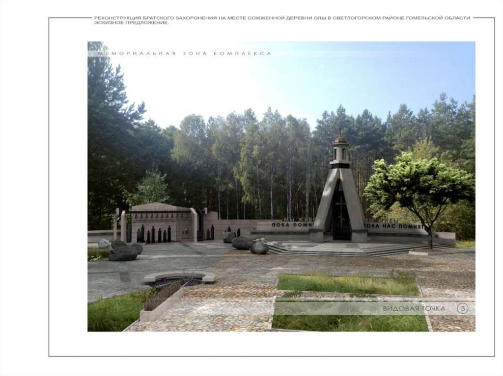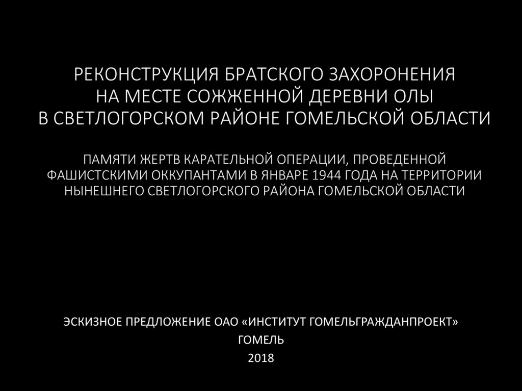 1. РЕКОНСТРУКЦИЯ БРАТСКОГО ЗАХОРОНЕНИЯ НА МЕСТЕ СОЖЖЕННОЙ ДЕРЕВНИ ОЛЫ В СВЕТЛОГОРСКОМ РАЙОНЕ ГОМЕЛЬСКОЙ ОБЛАСТИ ПАМЯТИ ЖЕРТВ