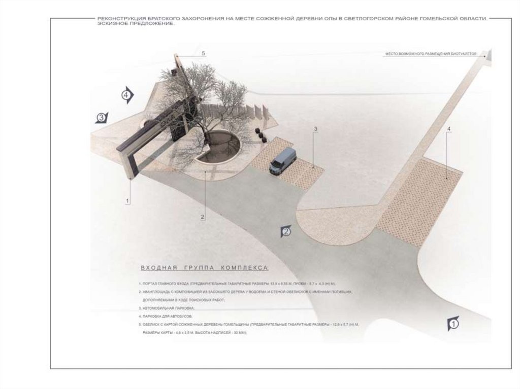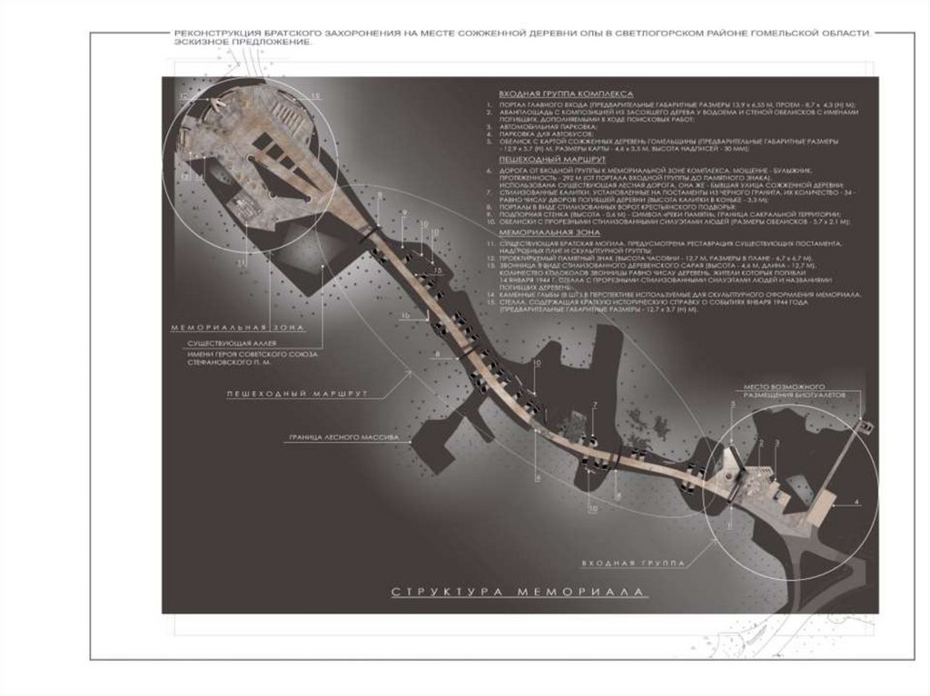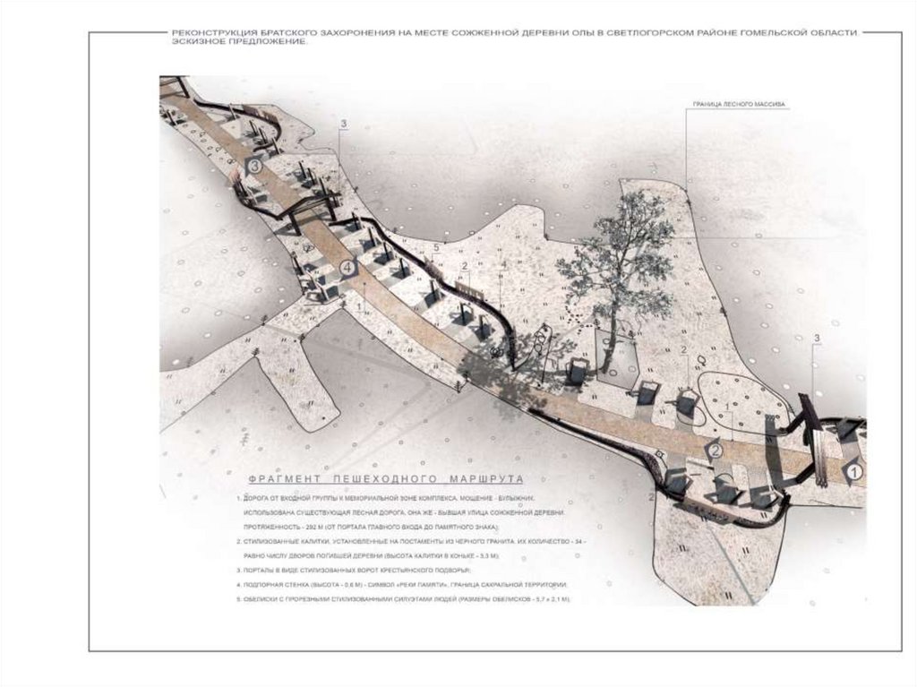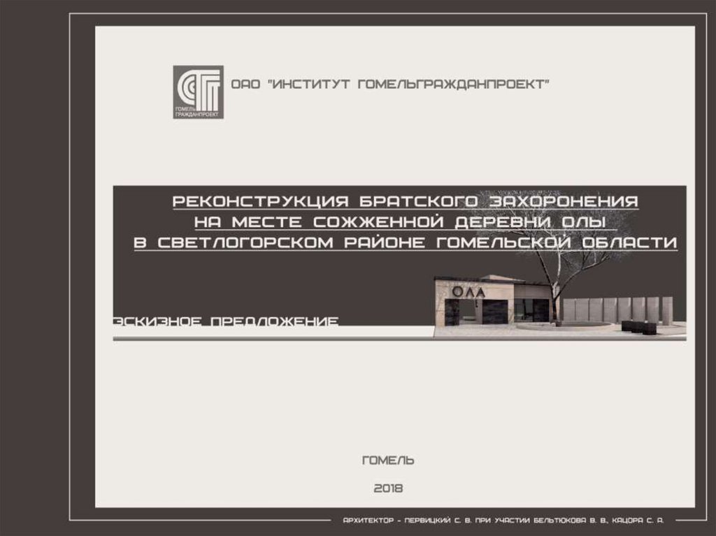 1. РЕКОНСТРУКЦИЯ БРАТСКОГО ЗАХОРОНЕНИЯ НА МЕСТЕ СОЖЖЕННОЙ ДЕРЕВНИ ОЛЫ В СВЕТЛОГОРСКОМ РАЙОНЕ ГОМЕЛЬСКОЙ ОБЛАСТИ ПАМЯТИ ЖЕРТВ