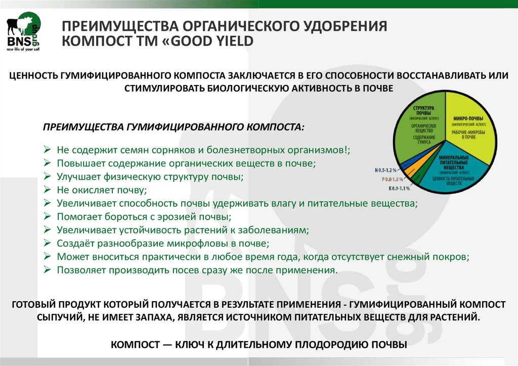 ПРЕИМУЩЕСТВА ОРГАНИЧЕСКОГО УДОБРЕНИЯКОМПОСТ ТМ «GOOD YIELD