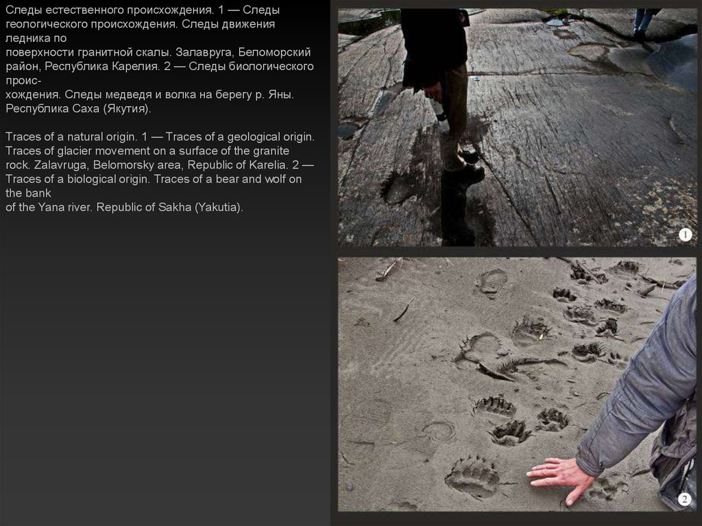 Следы естественного происхождения. 1 — Следыгеологического происхождения. Следы движения