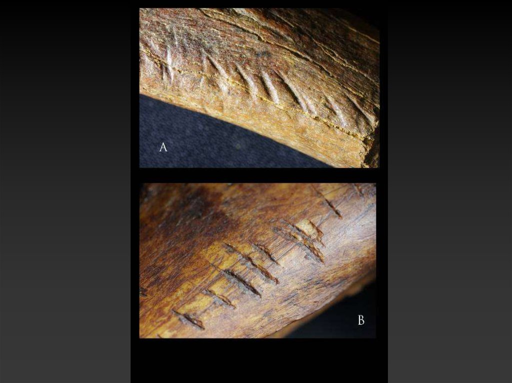 coast Is-Fyord, Svalbard archipelago, Norway. 2 — Cuttingsawing traces on a tooth of ancient deer lived 2 million years