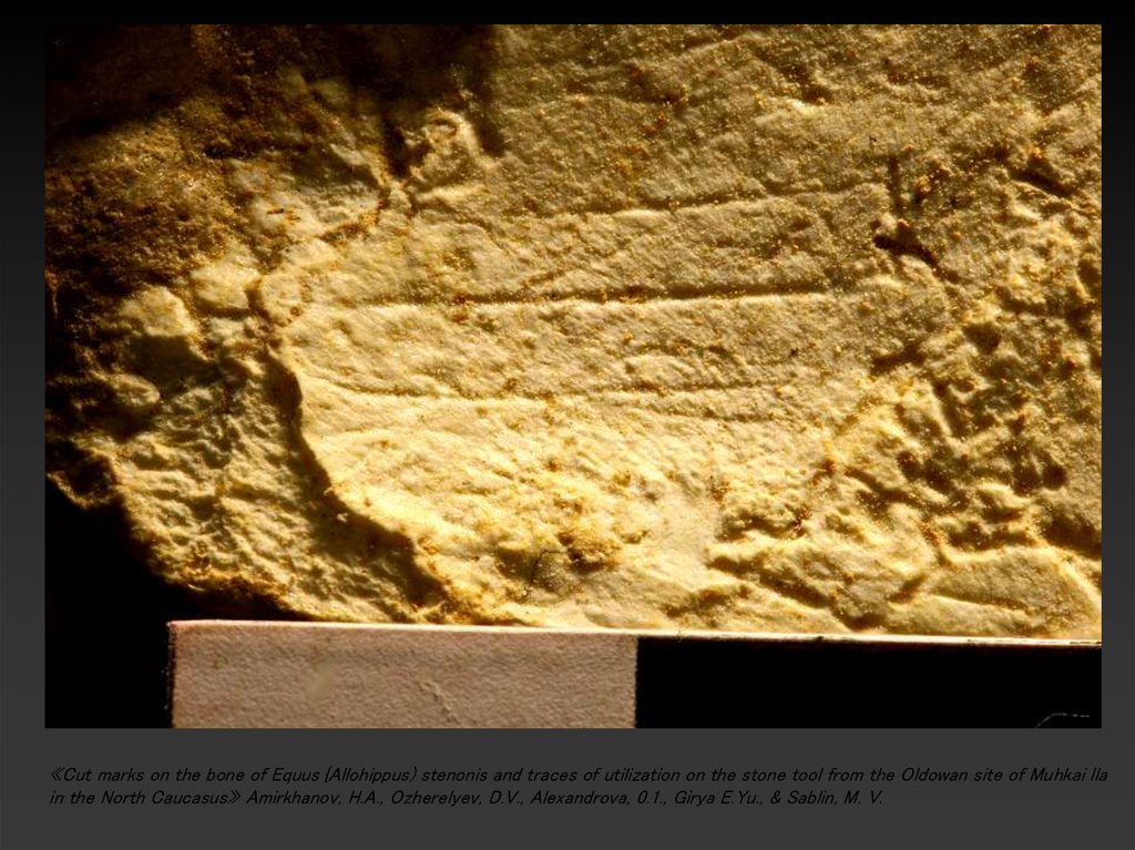 «Cut marks on the bone of Equus {Allohippus) stenonis and traces of utilization on the stone tool from the Oldowan site of Muhkai llain the North Caucasus» Amirkhanov, H.A., Ozherelyev, D.V., Alexandrova, 0.1., Girya E.Yu., & Sablin, M. V.