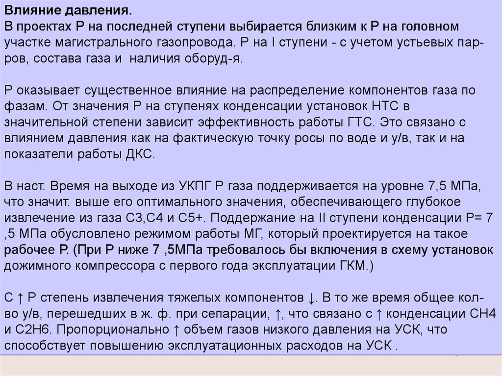 Влияние давления.В проектах Р на последней ступени выбирается близким к Р на головном