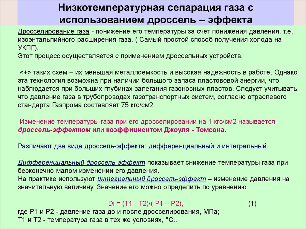 Низкотемпературная сепарация газа сиспользованием дроссель – эффекта
