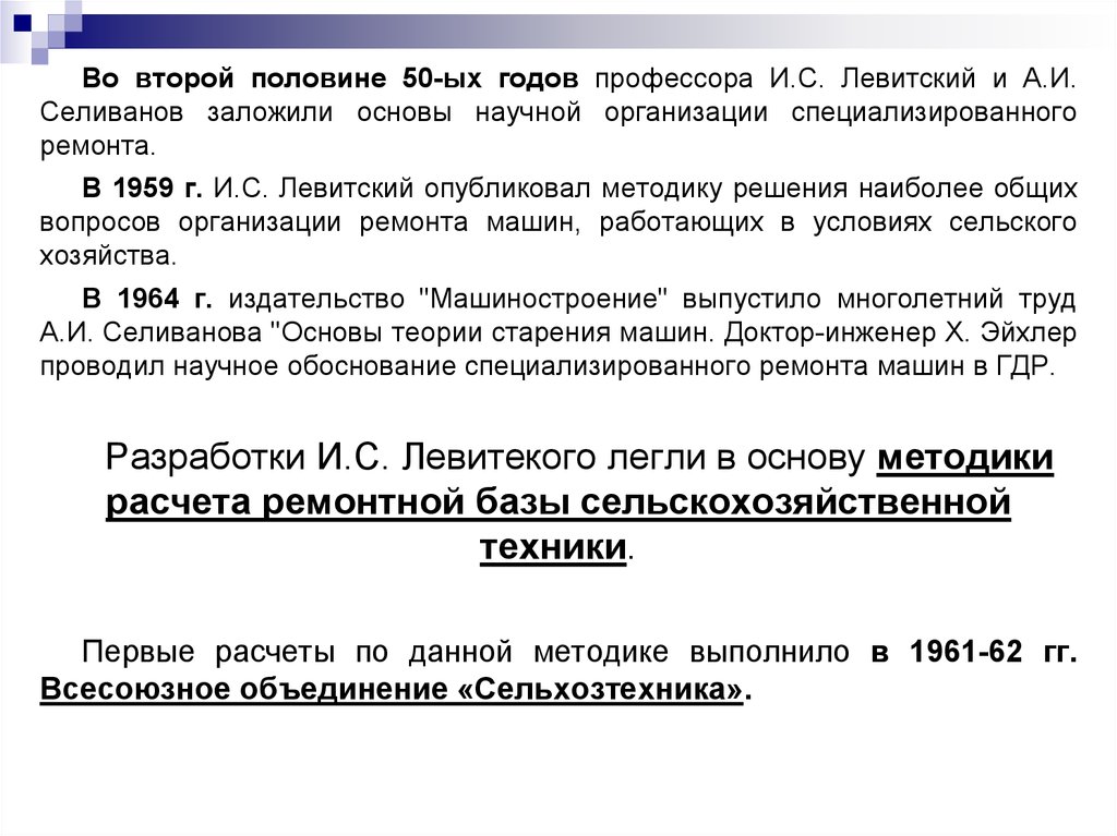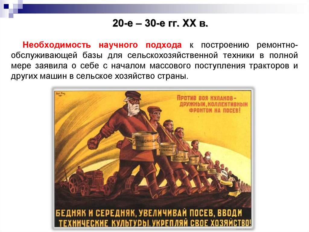20-е – 30-е гг. ХХ в.Необходимость научного подхода к построению ремонтнообслуживающей базы для сельскохозяйственной техники в полной