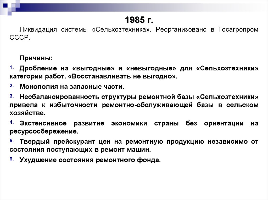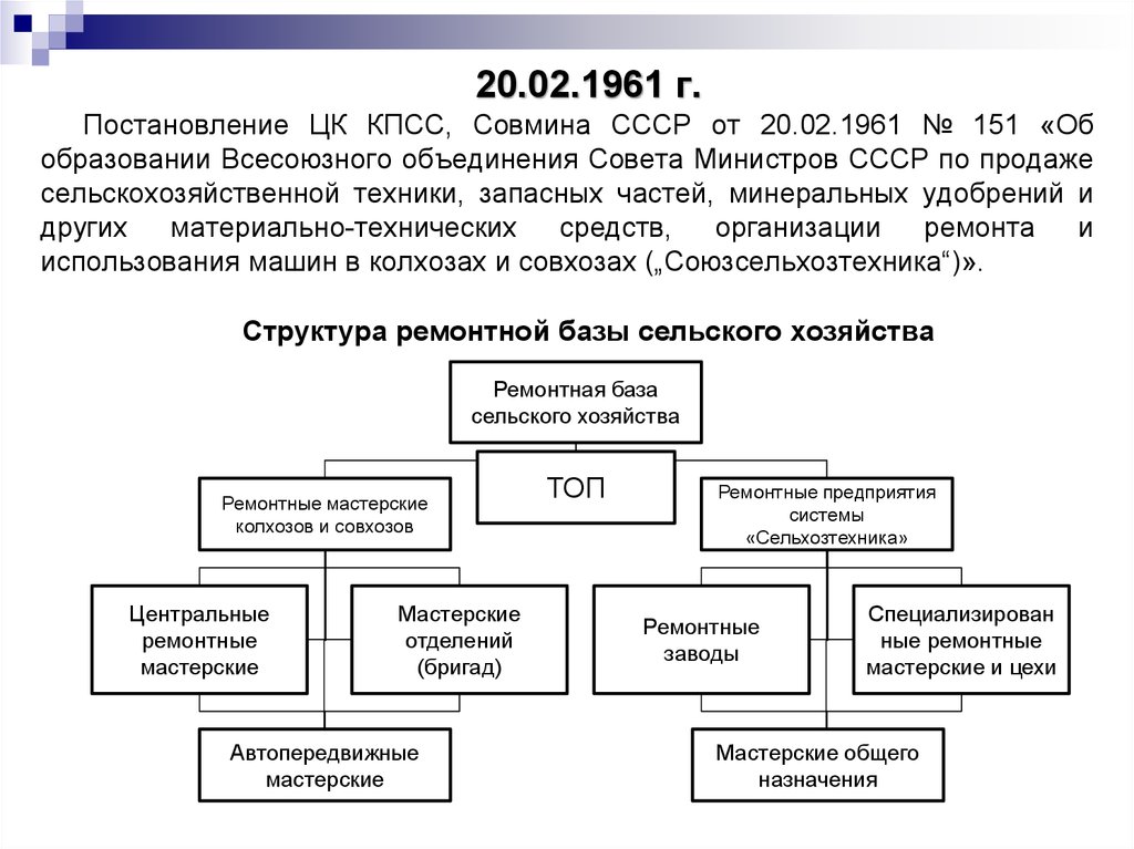 Аспекты истории развития ТС в сельскохозяйственном производстве России 20-е – 80-е гг. XX в