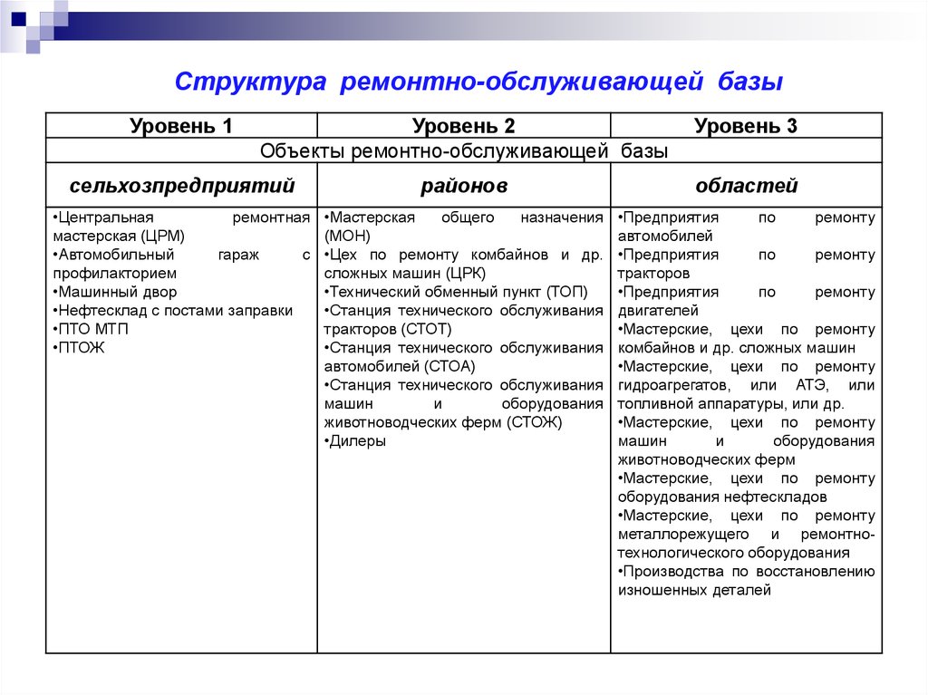 обслуживанию и ремонту, подготовка кадров, обеспечение