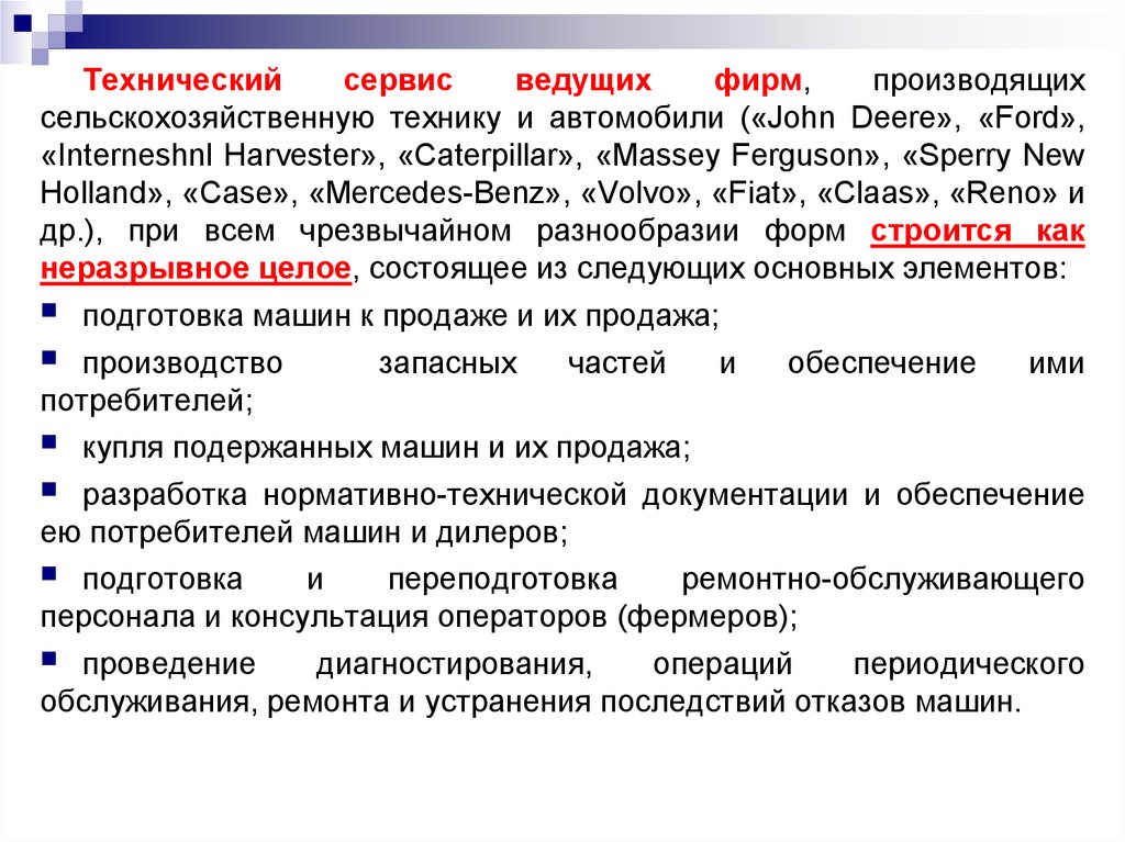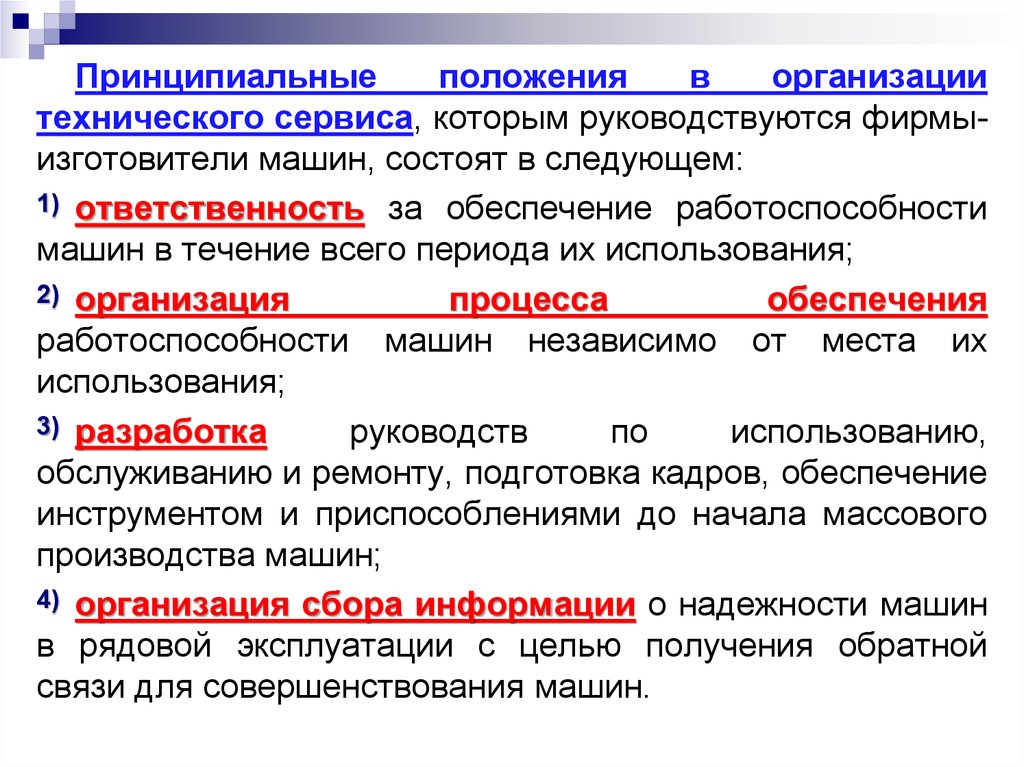 технического сервиса, которым руководствуются фирмыизготовители машин, состоят в следующем: